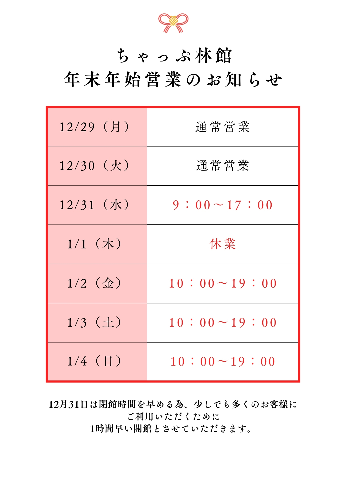 令和7年 12月 31日(水)午前 9時 ~ 午後 5時まで